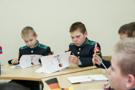 В конце урока кадеты провели смысловые параллели, олицетворили изучаемые языки с народами, говорящими на них и пришли к выводу, что, не смотря на все различия, все люди - дети одной большой семьи. И если помогать друг другу и действовать сообща, то можно добиться общей цели. Урок получился насыщенным, увлекательным и познавательным.
