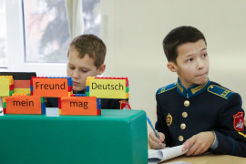 У воспитанников 5 «У» класса Ставропольского президентского кадетского училища преподаватели ОД (иностранный язык) Марина Николаевна Денисова (английский) и Марианна Вадимовна Шепелева (немецкий) провели интегрированный открытый урок: «Мой любимый школьный предмет».