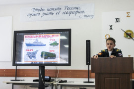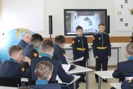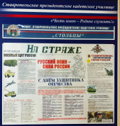 Самые младшие кадеты 1-го курса полностью посвятили свою стенгазету легендарному советскому танку Т-34, рассказали о его создателе и славной истории, закончив свою презентацию не менее известной песней о трёх танкистах. Шестиклассники в своей стенгазете «На страже» представили современный образ Вооружённых Сил Российской Федерации: её мощное вооружение, рассказали о ставропольцах – Героях России, участниках СВО, перечислили и поздравили с праздником всех родственников кадет, которые принимают участие в специальной операции и даже взяли интервью у одного из них. А закончили своё выступление авторским стихотворением кадета 6 «В» класса Ивана Мороза «За честь, за мир, за нас с тобой!». Газета учебного курса 7-х классов называлась «Армия России: сегодня, завтра и всегда!» и состояла из трёх блоков. В первом блоке кадеты рассказали о том, как следят за событиями СВО, о встречах с её участниками, родными и выпускниками СПКУ. Второй блок был посвящён 49-ой общевойсковой армии, а третий – планам Минобороны России на 2023 год. С авторским стихотворением «Путь героя» выступил кадет 7 «Г» класса Михаил Лысенко. Специальной военной операции, Героям Ставрополья и новейшему вооружению армии России были посвящены стенгазеты учебного курса 8-х классов. С огромным интересом зрители рассматривали стенгазету «Наши герои» и слушали девятиклассников, которые рассказывали о кадетах СПКУ выпуска 2018 года, участниках спецоперации. Примечательно, что все они, проходя обучение в СПКУ были участниками военного парада в честь годовщины Победы в Великой Отечественной войне. Участникам СВО посвятил стихотворение кадет Владимир Цигельников. Завершила мероприятие презентация стенгазеты учебного курса 10-х классов, посвящённая 247 гвардейскому десантно-штурмовому кавказскому казачьему полку и современной военной технике Российской армии.