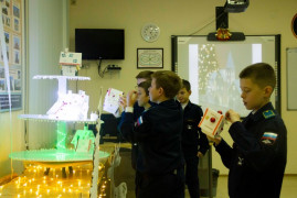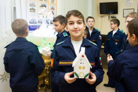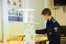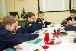 Кадеты создавали уютные зимние избушки, украшали и декорировали их, работали с деревом, создавая бравых гусаров и лошадок. Кроме того, воспитанники познакомились с историей ёлочной игрушки и с тем, как появились игрушки с изображением солдатиков, партизан, парашютистов и космонавтов. Интерпретировали через самостоятельную творческую работу образы солдатиков и военную атрибутику в ёлочной игрушке.