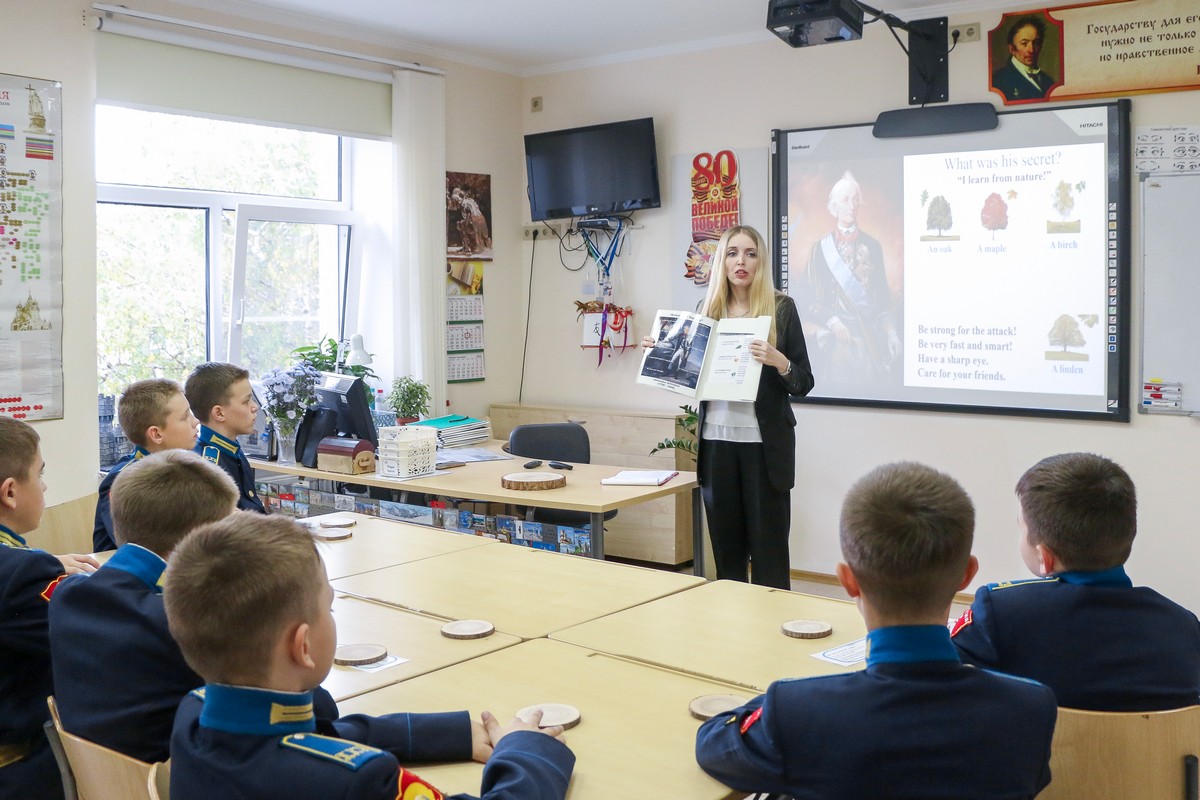 В рамках фестиваля-конкурса профессионального мастерства «Практика. Сотрудничество. Результат» в Ставропольском президентском кадетском училище прошло открытое внеурочное мероприятие по английскому языку преподавателя ОД (иностранный язык) Екатерины Ростиславовны Габдияновой у воспитанников 6 «Г» и 6 «В» классов (1 подгруппы) под названием «О чем шепчут деревья?». Мероприятие проводилось в форме интегрированного образовательного занятия-путешествия с элементами драматизации и творческого проекта. где знание рождалось не из учебника, а из шелеста листьев и колец на древесном спиле.