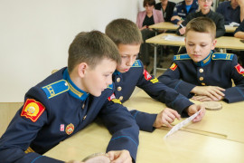 Кит первый: исследование. Кадеты взяли в руки настоящие спилы деревьев и тут же обычный вопрос «Сколько лет дереву?» превратился в расследование. «А почему кольца такие разные?» - кадеты сами догадались, что широкое кольцо - это «счастливый год» для дерева, а узкое - трудный. Так они не просто окунулись в «дендрохронологию», а прикоснулись к живой летописи. А дальше кадеты познакомились с одним из древнейших деревьев в России – Суворовским дубом из Крыма. Кадеты предполагали, какие же события он видел на своем веку, решая загадки преподавателя и сами догадались его названии, увидев связь с его легендой.