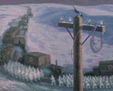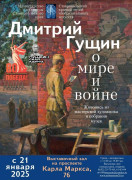 Дмитрий Сергеевич представляет поколение послевоенных детей, которые не только знают о войне по рассказам своих отцов-фронтовиков, но и сами испытали на себе ее последствия - тяготы разрухи, голода, горя родных и близких, оплакивающих не вернувшихся с войны. Сплав непростых чувств и настроений отражают произведения выставки из собрания музея, а также из мастерской художника. К теме войны и мира Гущин в своем творчестве обращался неоднократно. Особую выразительность несут работы, навеянные воспоминаниями его отца Сергея Александровича Гущина, прошедшего войну. Чувствуется, что события военных лет восприняты художником глубоко эмоционально и это мастерски передано в его сюжетах. Например, на полотне «Поколения» (2005) и в более ранних картинах 1980-х годов «Морозная зима», «Ожидание», «Рейс к передовой», «Первый ряд».