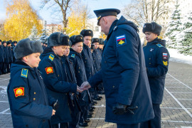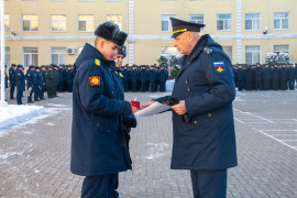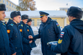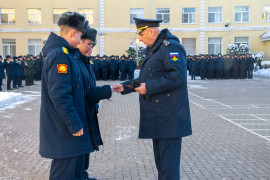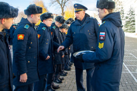 Продолжилось построение торжественной церемонией награждения воспитанников. Кадетам, обучающимся только на одни «пятёрки», были вручены значки отличников СПКУ. Кадетам 5 учебного курса Владиславу Агаркову, Ярославу Криулину и Игнату Дмитриеву вручены удостоверения судей спортивных соревнований по армейскому рукопашному бою.