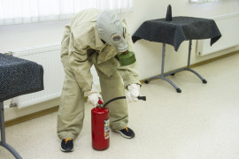 Олимпиада по ОБЖ традиционно состояла из двух туров: теоретического и практического. Особый интерес у кадет вызвали вопросы, связанные с оказанием первой помощи, определением азимута и расстояния до объекта по карте, ориентированием на местности, надеванием костюма пожарного на время, ручными осколочными гранатами.