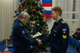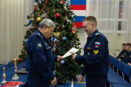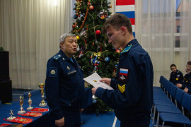 По итогам прошедшей четверти кадетам вручили переходящий вымпел и статуэтку: