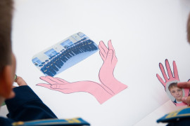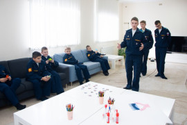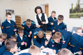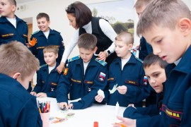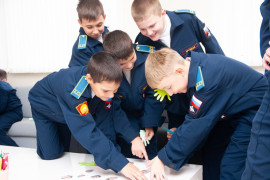 Поэтому очень важно создать условия, позволяющие каждому воспитаннику учебного курса 5-х классов как можно легче и радостнее вступить в новый этап обучения. Педагог-психолог Евгения Васильевна Головкова и кадеты учебного курса 11-х классов Сергей Куликов, Антон Мирошников, Владимир Калюжный организовали и провели тематическую психологическую акцию «Тёплые руки, храброе сердце» в рамках реализации программы мероприятий недели психологии в Ставропольском ПКУ. Старшие наставники-кадеты предложили пятиклассникам выполнить совместную коллективную работу «День общения или «Вместе мы одна семья». Чтобы поддержать и развить в пятиклассниках интерес к знаниям, помочь им общаться с новыми одноклассниками и педагогами, 11 класс использовал эмоционально окрашенные приёмы работы.