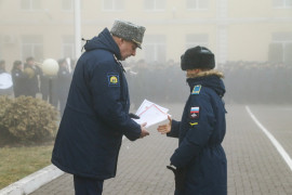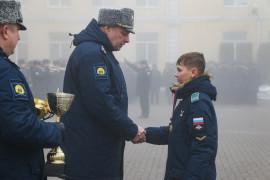 Также были вручены заслуженные награды сильнейшим спортсменам училища – победителям и призёрам Межрегионального турнира Терского казачьего войска по смешанным единоборствам в разделе армейский рукопашный бой. Кадеты получили дипломы, медали и кубки, подтвердив высокий уровень физической подготовки, силу духа и волю к победе.