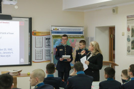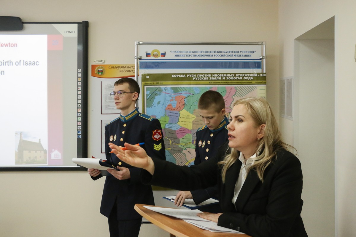 В Ставропольском президентском кадетском училище продолжается фестиваль «Научный февраль», и с каждым днём его события становятся всё ярче и необычнее. На этот раз в центре внимания оказался 7И (инженерный) класс, где прошла интеллектуальная игра-викторина на английском языке «From Newton to Now» («От Ньютона до наших дней»). Преподаватели иностранного языка Анна Григорьевна Бурова и Елена Ивановна Орлова организовали мероприятие в формате популярного шоу Jeopardy (в России известного как «Своя игра»).