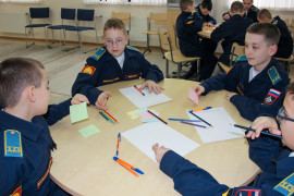 Второе. Откровенный разговор. На этапе дискуссии, глядя на готовые работы, кадеты обсудили, что происходит с человеком, если он не соблюдает правила ЗОЖ. Вместе они искали причины и последствия. Так фокус плавно сместился с общего «здоровья» на конкретное «интересное и полезное времяпровождение здесь и сейчас».