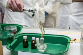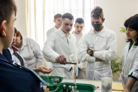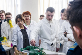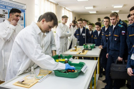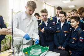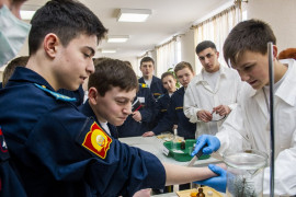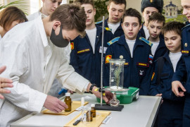 Ирина Анатольевна Панова с кадетами 11 «Д» класса не первый год принимает участие в «Открытой химической лаборатории», ставшей традиционной в нашем училище. Кадеты Георгий Афанасов, Данила Бережецкий, Никита Задорожный, Константин Панасенко-Агарков не просто провели «химические фокусы», но и объяснили суть происходящего с научной точки зрения. Были проведены опыты: «Дым без огня», «Огонь без спичек», «Светофор», «Бурый дым». В подготовке всех опытов приняла активное участие лаборант химии Людмила Алексеевна Кудрявцева.