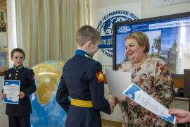 Дипломы победителей и призёров в номинации «Природа России» вручили участникам заместитель руководителя МК РГО «САРМАТ» Владислав Петрович Кирьянов и член экспертного жюри, один из инициаторов Фотоконкурса Светлана Васильевна Попова, преподаватель ОД (физика, химия и биология). В номинации «Историко-культурное наследие России» Дипломы вручила Оксана Викторовна Крупина, методист Учебного отдела, член жюри конкурса, поблагодарив участников за активность и высокое качество представленных работ.