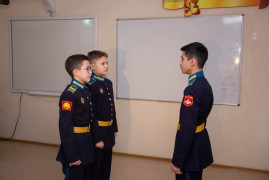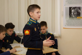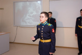 На уроке кадеты декламировали прозаические отрывки из произведений (Лихов Инар, Рогачев Леонид), инсценировали рассказ В.А. Каверина «Последняя ночь» (Янгалычин Данияр, Гальцев Семен, Кичикидис Констанинос), а закончили урок авторским стихотворением Мороз Ивана «Война 2022», которое он прочитал вместе со своими товарищами Коваленко Тимофеем и Чергинец Тимофеем. Стихотворение стало финальной эмоциональной точкой урока, так как оно посвящено самой актуальной теме сегодня – теме СВО.