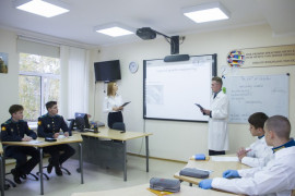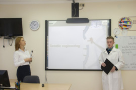 Методическая цель занятия – реализация проблемного метода в рамках технологии предметно-языкового интегрированного обучения. Во время урока старшеклассники занимались индивидуально-проектной деятельностью, групповым обсуждением этических норм изменения ДНК человека. Кадеты познакомились с новой лексикой по теме, совершенствовали навыки аудирования и устной речи, развивали логическое мышление и память.