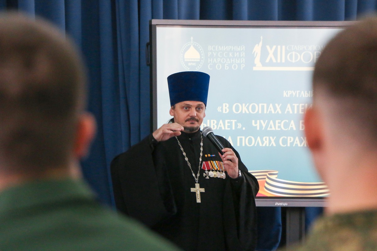 В Ставропольском ПКУ в рамках форума состоялся круглый стол «В окопах атеистов не бывает». Чудеса Божии на полях сражений». Участниками дискуссии стали: