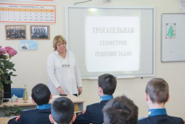 Почему же «Трогательная геометрия»? Задачи можно было потрогать руками. И потому, что урок доказал, что геометрия не отвлечённая от жизни наука, а живая и необходимая. Занятие заинтересовало кадет, тронуло их чувства и вызвало эмоции.