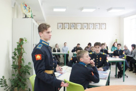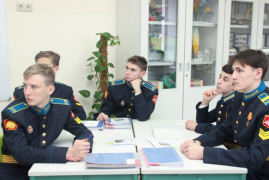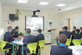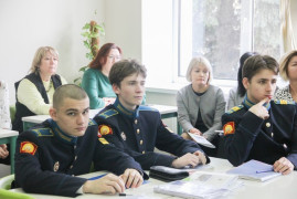 Кадеты 11 «Г» класса продемонстрировали высокую познавательную активность, эмоциональность, доказали, что способны работать в быстром темпе. Преподавателем была выбрана форма урока – исследование в виде паритетного диалога, которая позволила отработать полученные знания по теме. Применение методов мозгового штурма, дискуссии и диспута на этапе рефлексии продемонстрировало готовность кадет выпускного класса к познавательным мотивам осуществления индивидуальной образовательной траектории с учётом выбора будущей профессии.
