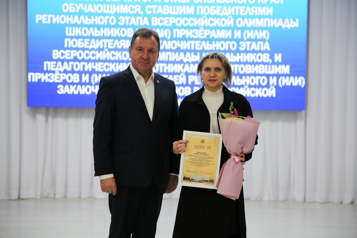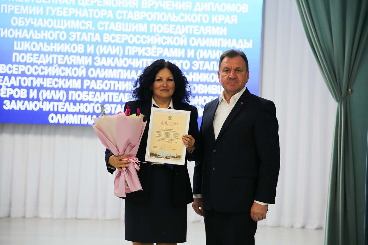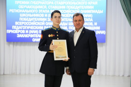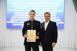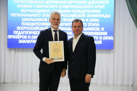 Глава города Ставрополя Иван Иванович Ульянченко от всей души поздравил обучающихся с прекрасными результатами, выразил огромную благодарность их наставникам-педагогам и вручил дипломы премии губернатора Ставропольского края.