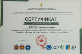 Педагоги-психологи учебного отдела Ставропольского президентского кадетского училища Оксана Вячеславовна Гревцева, Инна Александровна Шестак и Галина Викторовна Тугушева приняли активное участие в специальном сборе педагогов-психологов общеобразовательных организаций Министерства обороны Российской Федерации по обмену опытом работы с суворовцами, нахимовцами, кадетами и воспитанницами, который проходил в Москве на базе конгрессно-выставочного центра Министерства обороны Российской Федерации «Патриот».