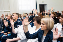 После приветствия начальника Ставропольского ПКУ Вячеслава Валерьевича Преснухина с первым докладом на тему: «О ходе реализации решений педсовета от 24 августа 2022 года» выступила секретарь педагогического совета Оксана Викторовна Крупина.