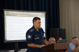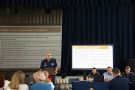 С докладом на тему «Об утверждении документов по планированию работы СПКУ на 2023/2024 учебный год: Образовательных программ и Плана работы училища, локальных актов училища, регламентирующих вопросы организации образовательной деятельности в связи с переходом на ФООП (Федеральную основную общеобразовательную программу)» выступил заместитель начальника училища по учебной работе Сергей Владимирович Степанов.