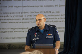 С основным докладом – «Достижение качества показателей эффективности деятельности училища: итоги 2022/2023 учебного года, проблемы и пути их решения. Задачи на 2023/2024 учебный год» – на педсовете выступил начальник училища, кандидат технический наук, профессор Вячеслав Валерьевич Преснухин. Среди главных достижений педагогического коллектива СПКУ он отметил обеспечение высокого качества знаний воспитанников. Ежегодно растёт и количество отличников и медалистов среди кадет и выпускников училища. В 2023 году выпускник СПКУ Александр Семёнов набрал 100 баллов по ЕГЭ сразу по двум предметам – история и русский язык. Более 60% выпускников 2023 года стали курсантами военных вузов.