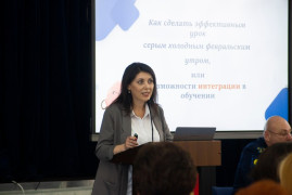 Преподаватель отдельной дисциплины (иностранный язык) Алина Сергеевна Свириденко рассказала об интеграции содержания, жизненного опыта и информационного пространства. Тема её доклада называлась «Как сделать урок интересным хмурым мартовским утром?».