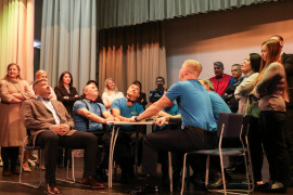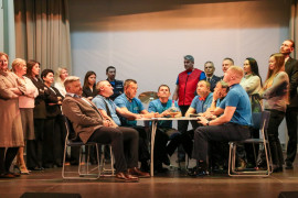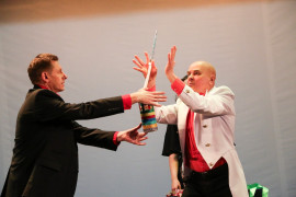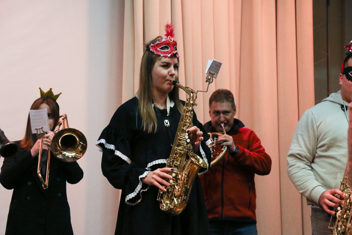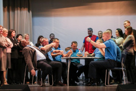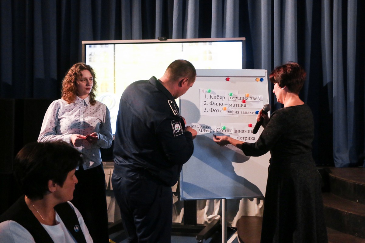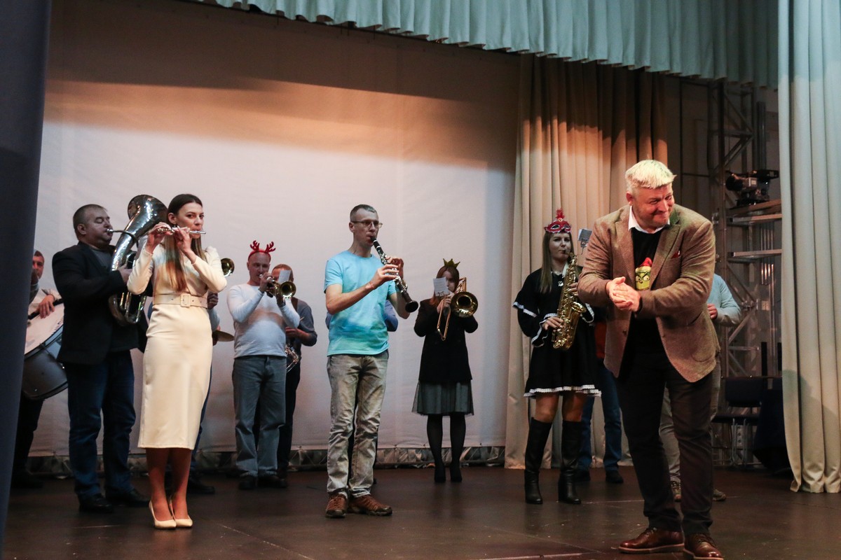 Шуточная пародия на игру интеллектуального клуба «Что? Где? Когда?», весёлое исполнение музыкальной композиции оркестром СПКУ, инструментально-вокальная презентация о педагогической работе от воспитателя Евгения Бердникова, коллективное творчество по созданию новых дисциплин, смешные фокусы с превращением методиста по социальной работе Марины Черномородовой в ещё одну неподражаемую Снегурочку, вокальные выступления солиста Ставропольской государственной филармонии Ильяса Батчаева и педагога и ведущего Игоря Мирошниченко – всё было неожиданно, по-новогоднему весело и подарило всем праздничное настроение.