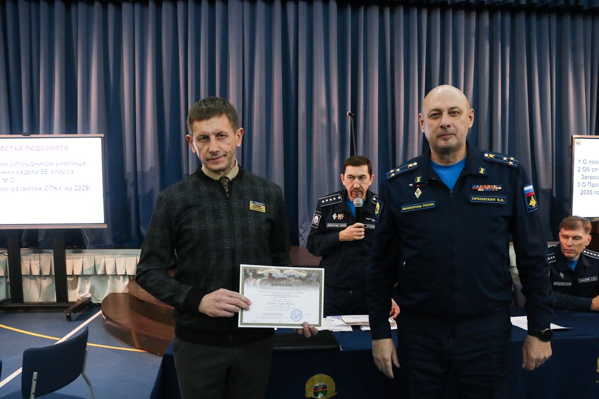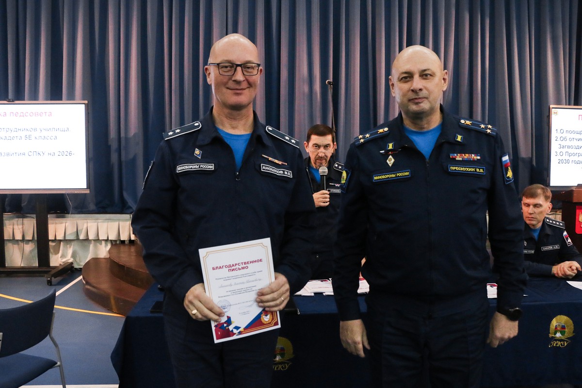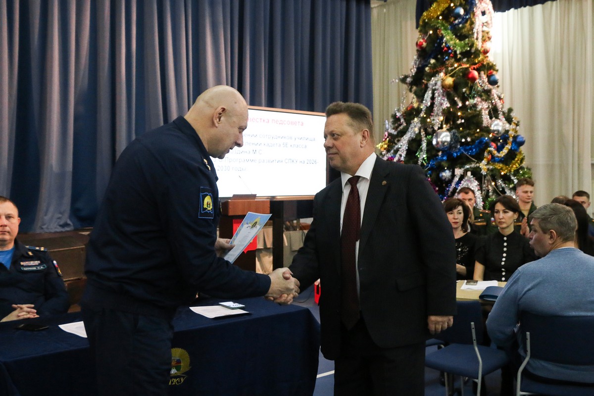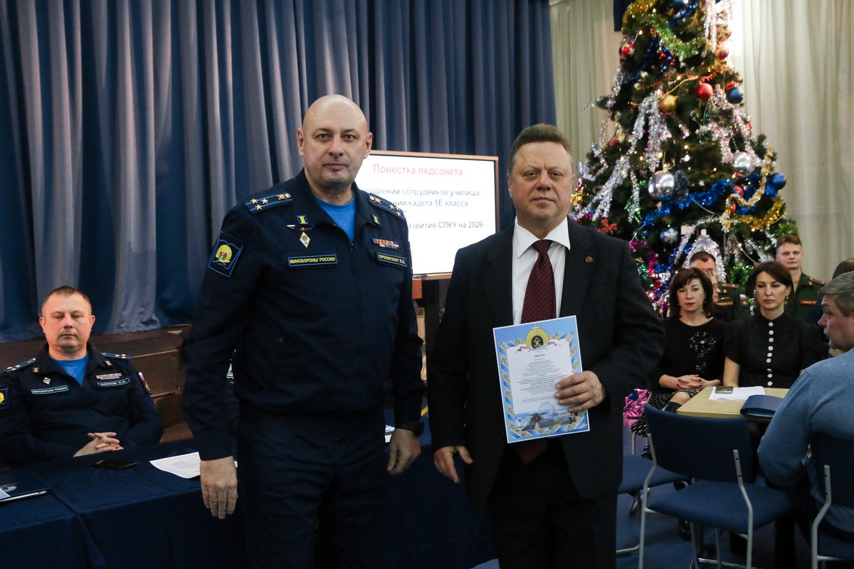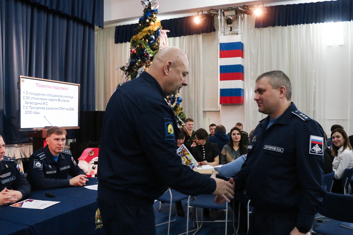 Завершился педсовет поздравлением начальника училища с наилучшими пожеланиями здоровья, благополучия и профессиональных успехов всех присутствующих в грядущем Новом году.