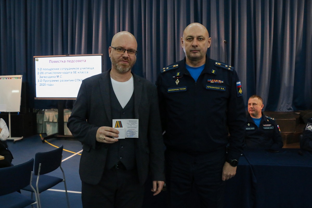 Медаль Министерства обороны Российской Федерации «Памяти Героев Отечества» была вручена педагогу дополнительного образования, заведующему Музеем СПКУ Ильясу Сапарбиевичу Батчаеву.