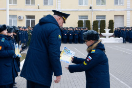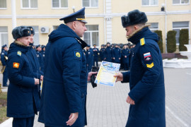 Продолжилось построение торжественной церемонией награждения воспитанников. Дипломы победителей и призёров получили кадеты – участники общеучилищного турнира по плаванию, а также призёр турнира по лёгкой атлетике.