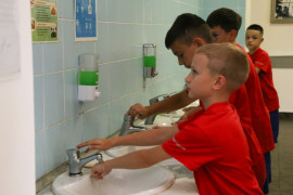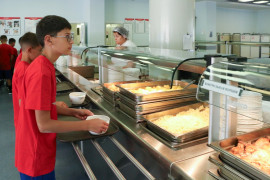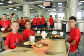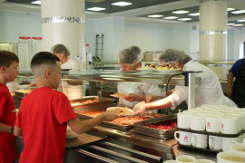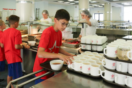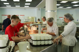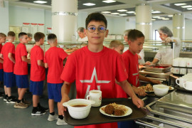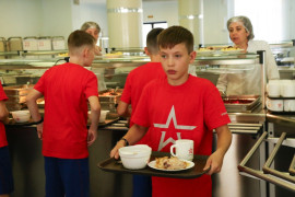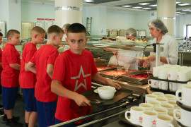 В кадетскую столовую новобранцы отправились по своим подразделениям, ребята очень старались держать строй и маршировать в ногу. Питание в Ставропольском ПКУ осуществляется по системе «шведский стол». Поэтому вымыв руки и став в очередь на линию раздачи, мальчишки могли выбрать себе: первое блюдо, горячее, гарнир, салат – всё в нескольких вариантах. И обязательно – компот! Ребята были немного удивлены такому разнообразию, но главное – обед будущим кадетам пришёлся по вкусу!