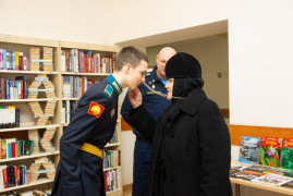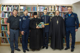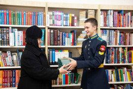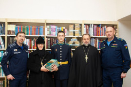 Несколько экземпляров издания кадет СПКУ Арсений Поздняков по поручению автора книг и от лица кадет, педагогов и руководства училища торжественно вручил игуменье Иоанно-Мариинского женского монастыря в Ставрополе матушке Иоанне.