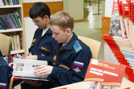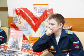 На протяжении всей учебной недели, посвящённой празднованию 78-й годовщины Великой Победы, в библиотеке СПКУ работает книжная выставка «И в памяти, и в книге – навсегда». Выставка направлена на то, чтобы ещё раз убедить молодое поколение в необходимости знать историю своей страны и навсегда сохранить в сердце благодарность к людям, завоевавшим мир и покой на земле. Вниманию воспитанников представлены художественные произведения выдающихся советских и российских писателей, повествующие о событиях Великой Отечественной войны, о героизме и самопожертвовании советских солдат, о детях, которые своим трудом и храбростью помогали фронту. Среди них: К. Симонов «Живые и мертвые», Б. Васильев «А зори здесь тихие», Ю. Бондарев «Горячий снег», К. Воробьев «Убиты под Москвой» и многие другие. Один из разделов выставки посвящён лучшим произведениям о войне для детей, среди них – рассказы о войне Л. Кассиля «Линия связи», А. Митяева «Подвиг солдата», С. Алексеева «Блокада Ленинграда» и др. Центральное место на выставке занимают прекрасно изданные объёмные фолианты из серии «Книга Памяти СПКУ». В них представлены материалы, собранные воспитанниками и сотрудниками училища о своих родных и близких – участниках Великой Отечественной войны. «Книга Памяти СПКУ» вызвала у воспитанников огромный интерес и волнение.