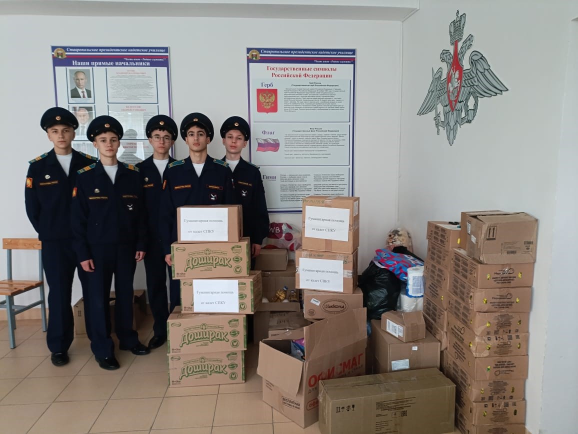 В Ставропольском президентском кадетском училище состоялась волонтёрская акция под названием «Подари тепло солдату». В ее рамках была собрана гуманитарная помощь участникам специальной военной операции – выпускникам Ставропольского ПКУ. В сборе гуманитарной помощи принимали участие воспитанники и их родители всех учебных курсов училища, а также сотрудники СПКУ.