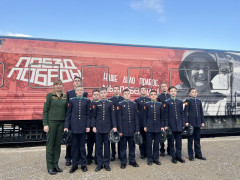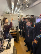 В краевую столицу на несколько дней прибыл передвижной музей «Поезд Победы». Восемь вагонов поезда были посвящены определённому отрезку, историческому событию, Великой Отечественной войны. С уникальными инсталляциями поезда-музея познакомились и воспитанники Ставропольского президентского кадетского училища.