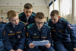 Затем кадеты, разделившись на команды, выполняли специальные задания для «подготовки в космонавты». Мальчишки попробовали себя в роли героев: конструкторов и инженеров, первых космонавтов, сотрудников медицинских служб. Ознакомившись с материалами, кадеты сочиняли небольшие рассказы и представляли их остальным командам от первого лица.