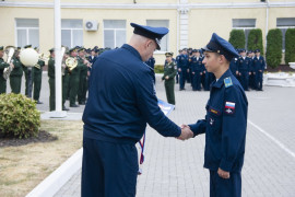 После этого состоялась торжественная церемония награждения кадет за их успехи. Дипломы лауреатов международного детского творческого конкурса получили лучшие пианисты училища Эмиль Волков и Ахмад Джапаров. Очень много было за минувшую неделю спортивных достижений кадет. Так свои заслуженные награды получили победители и призёры фестиваля Шпаковского округа по Армейскому рукопашному бою, победители соревнований по плаванию на кубок города Ставрополя и открытого первенство Ставропольского края по двоеборью.