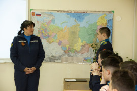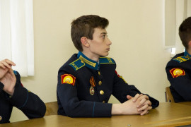 Провела классный час Ирина Валерьевна Дьякова. Ребята вместе с педагогом искали ответы на главные вопросы: «Кто такие настоящие мужчины? Каковы главные качества настоящего мужчины-офицера?». Кадеты во время внеурочного мероприятия совершили краткий экскурс в историю легендарных полководцев и патриотов Отчизны, истинных защитников своего Отечества.