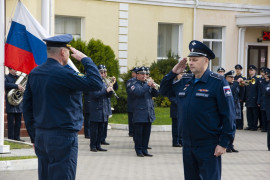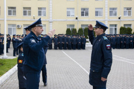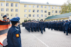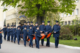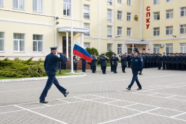 Завершилось построение прохождением торжественным маршем личного состава двух училищ с равнением на двадцатиметровое полотно Георгиевской ленты.