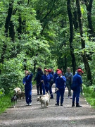 Попрощавшись с усатыми хозяевами здешних мест, кадеты вышли во внутренний двор приюта, где располагался большой вольер с собаками. Установив зрительный контакт и взаимную симпатию, кадеты и четвероногие друзья отправились в лес на прогулку. Каждого воспитанника Ставропольского ПКУ сопровождали благодарные спутники на поводках, которые хотели показать все интересные и укромные места этого леса, то и дело норовя рвануть вперёд. Но кадеты уверенными и понятными движениями для своих хвостатых друзей давали понять маршрут и темп этой прогулки.