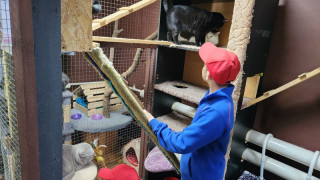 Вернувшись с краткосрочного похода, кадеты вынесли подарки и накормили питомцев приюта.