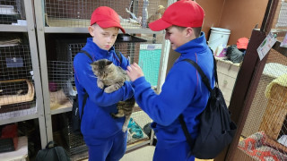 Мероприятие проходило по уже знакомой схеме: кадеты разбились на две группы, чтобы по очереди посетить с поглаживаниями кошек и – с почёсываниями – собак. Кошки и собаки – братья наши меньшие, которые могут и хотят принимать добро, теплоту и любовь человека, а также в многократном размере всё это отдавать.