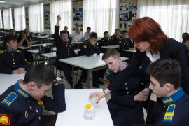 Внеурочное познавательное мероприятие по физике провела у воспитанников 8 «Д» и «Е» классов Ставропольского президентского кадетского училища преподаватель физики Ольга Владимировна Вдовиченко. Называлось мероприятие «Профессионал» во всём!»
