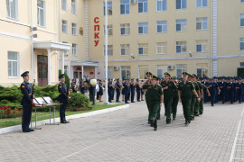 Траурную речь в память о выпускниках произнёс начальник Ставропольского президентского кадетского училища Вячеслав Валерьевич Преснухин. Он отметил, что сегодня Ставропольское президентское кадетское училище скорбит и прощается с тремя своими выпускниками, трагически погибшими в зоне СВО. Это выпускники 2018 года лейтенант Мителенко Леонид Евгеньевич и лейтенант Лышко Иван Владимирович, а также выпускник 2021 года сержант Давыдов Дмитрий Сергеевич. Все они были добрыми, активными, весёлыми и отзывчивыми парнями, у которых всегда было много друзей, они тянулись к знаниям, увлекались спортом, были участниками парада Победы. О каждом из выпускников, об их достижениях, характере, учёбе начальник училища отдельно подробно рассказал. В завершении речи подчеркнул, что воспитанники, педагогический коллектив и руководство училища скорбят об утрате своих выпускников, светлая память о них навсегда сохранится в сердце каждого, кто их знал.
