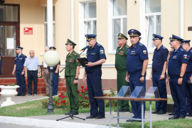 Почётный караул торжественно вынес портреты Мителенко Леонида Евгеньевича, Лышко Ивана Владимировича и Давыдова Дмитрия Сергеевича.