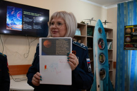 В форме интерактивной беседы с элементами игры и творческой деятельности педагог провела с воспитанниками увлекательное путешествие по страницам истории покорения космоса.