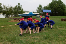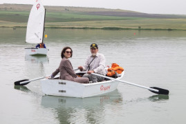 На буферном водохранилище рядом с Левоегорлыкским хутором самые юные кадеты Ставропольского ПКУ под руководством опытных яхтсменов и воспитателей курса собирали, спускали на воду и учились управлять швертбортами. Швертбот – это небольшое парусное судно, дословно название переводится как «лодка с мечом». Швертботы имеют только лёгкий подъёмный плавник.