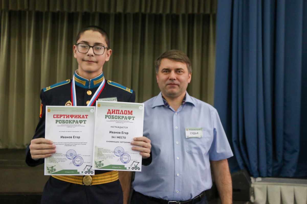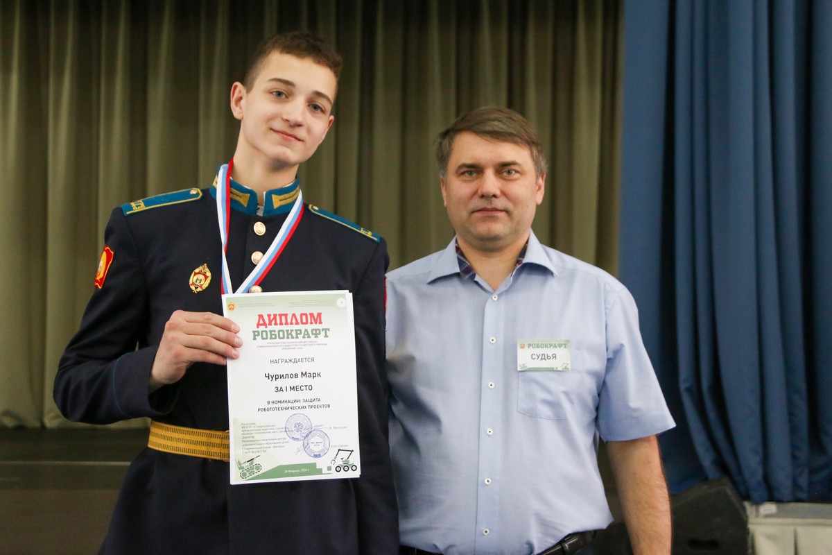 В Ставропольском президентском кадетском училище прошёл Открытый робототехнический фестиваль «РОБОКРАФТ-2026». Мероприятие направлено на развитие технического творчества, интеллектуального потенциала и инженерного мышления молодёжи, демонстрацию достижений в инженерно‑технической сфере, а также укрепление имиджа училища в регионе. Организаторами фестиваля выступили Федеральное государственное казенное общеобразовательное учреждение «Ставропольское президентское кадетское училище», Региональный модельный центр дополнительного образования детей Ставропольского края – филиал государственного автономного образовательного учреждения высшего образования Невинномысский государственный гуманитарно-технический институт.