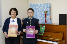 XI Всероссийский конкурс «Радуга инноваций» проходил в Ставрополе в различных номинациях. Кадет 7 «Е» класса Ахмад Джапаров, обучающийся в объединении «Фортепиано» под руководством педагога ДО Антонины Аркадьевны Рудовой, принял участие в этом соревновании в номинации «Инструментальное исполнительство».